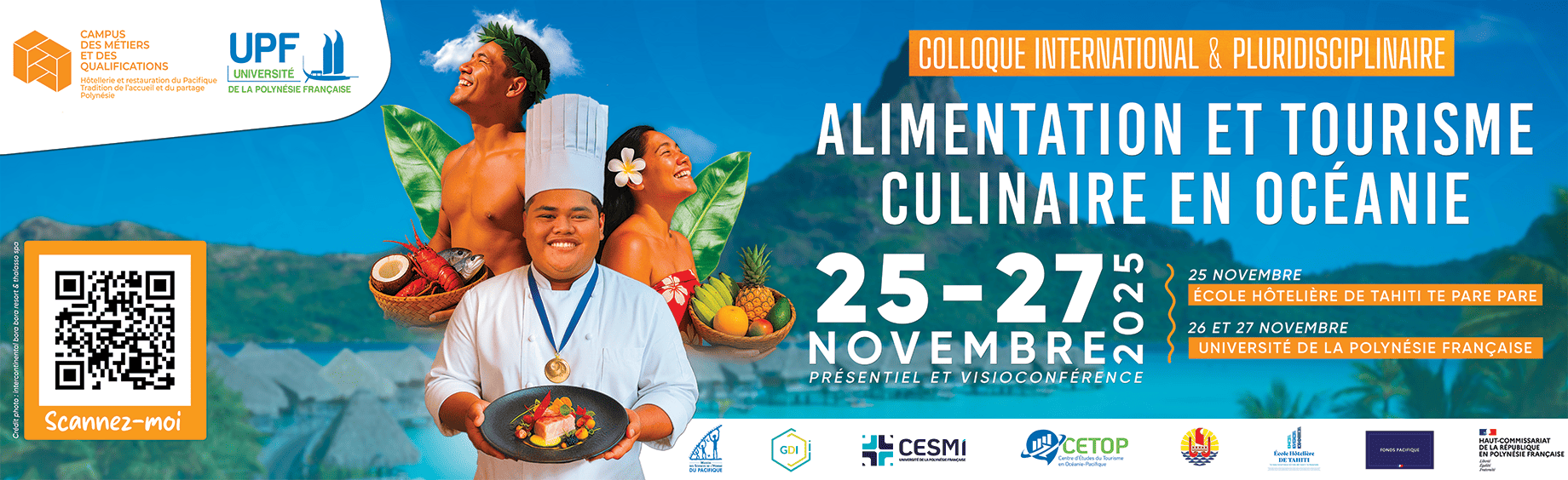 Organisé par le Campus des Métiers et des Qualifications Hôtellerie et Restauration du Pacifique (CMQP), le Centre d’Études du Tourisme en Océanie-Pacifique (CETOP), le Centre d’Étude de la Santé en Milieu Insulaire (CESMI) et le Centre Gouvernance et Développement Insulaire (GDI), en partenariat avec l’Université de la Polynésie française (UPF), cet événement réunira chercheurs, étudiants, professionnels du tourisme et de la restauration, institutions et acteurs socio-économiques du bassin Pacifique et au-delà, autour d’un même objectif : penser l’alimentation comme levier de développement durable, culturel et sanitaire en Océanie.
