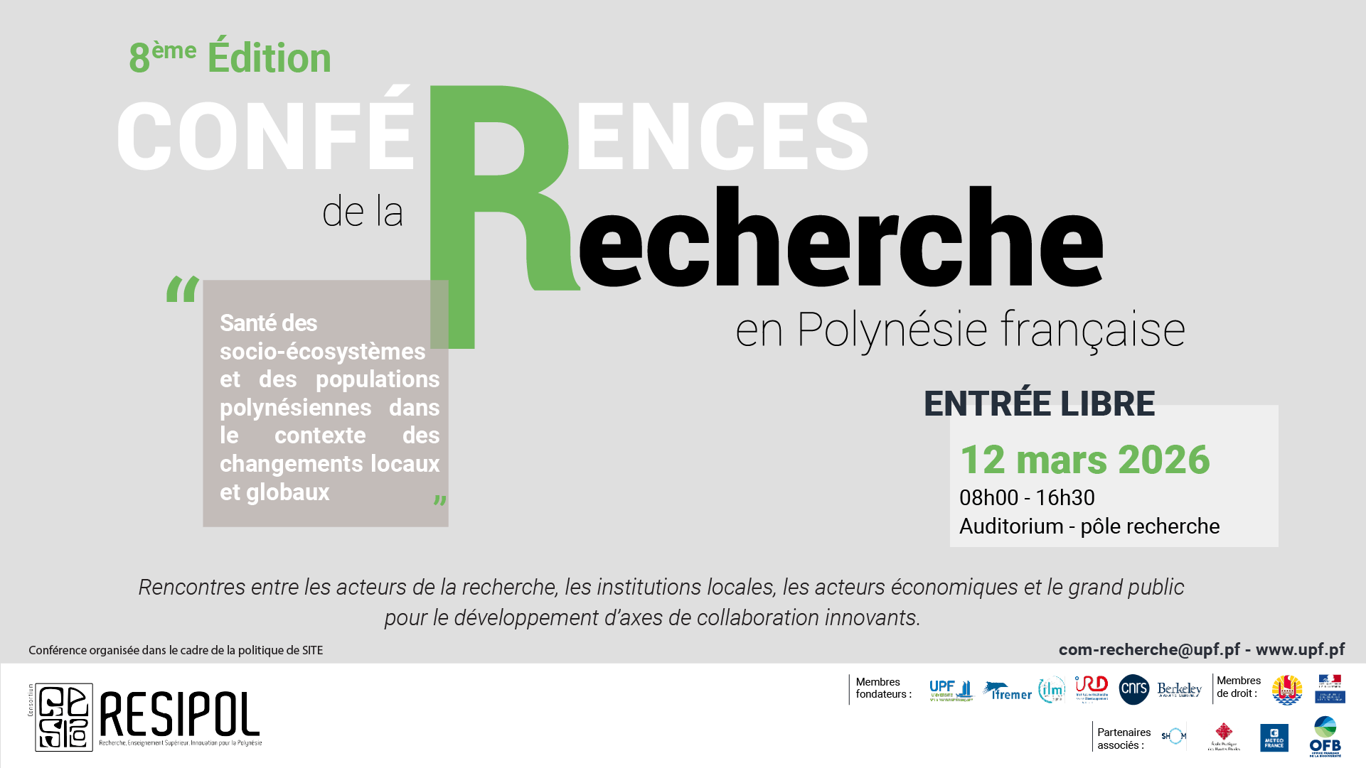 Organisées par le Consortium RESIPOL dans le cadre de la politique de site de la Polynésie française, les Rencontres scientifiques annuelles constituent un temps fort de la recherche sur le territoire.