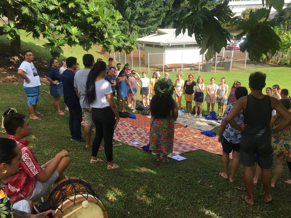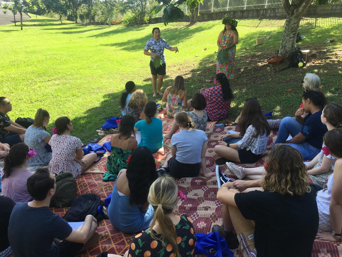L'enseignante en LLCER-LP , Karine Leocadie et ses étudiants ont offert aux étudiants australiens un exposé en traduction simultanée (tahitien-français) sur le thème des légendes polynésiennes, vu et étudié à travers le regard d'un pilier fort du monde polynésien, notre regretté Patrick Araia AMARU (27.09.1957-18.06.2018), homme de cœur, poète, auteur, ardent défenseur de la culture polynésienne, parti trop tôt, mais sans oublier de nous montrer le chemin à parcourir pour mieux s'enraciner dans nos savoirs culturels bien vivants afin de permettre une transmission intergénérationnelle dans nos si belles langues polynésiennes.
