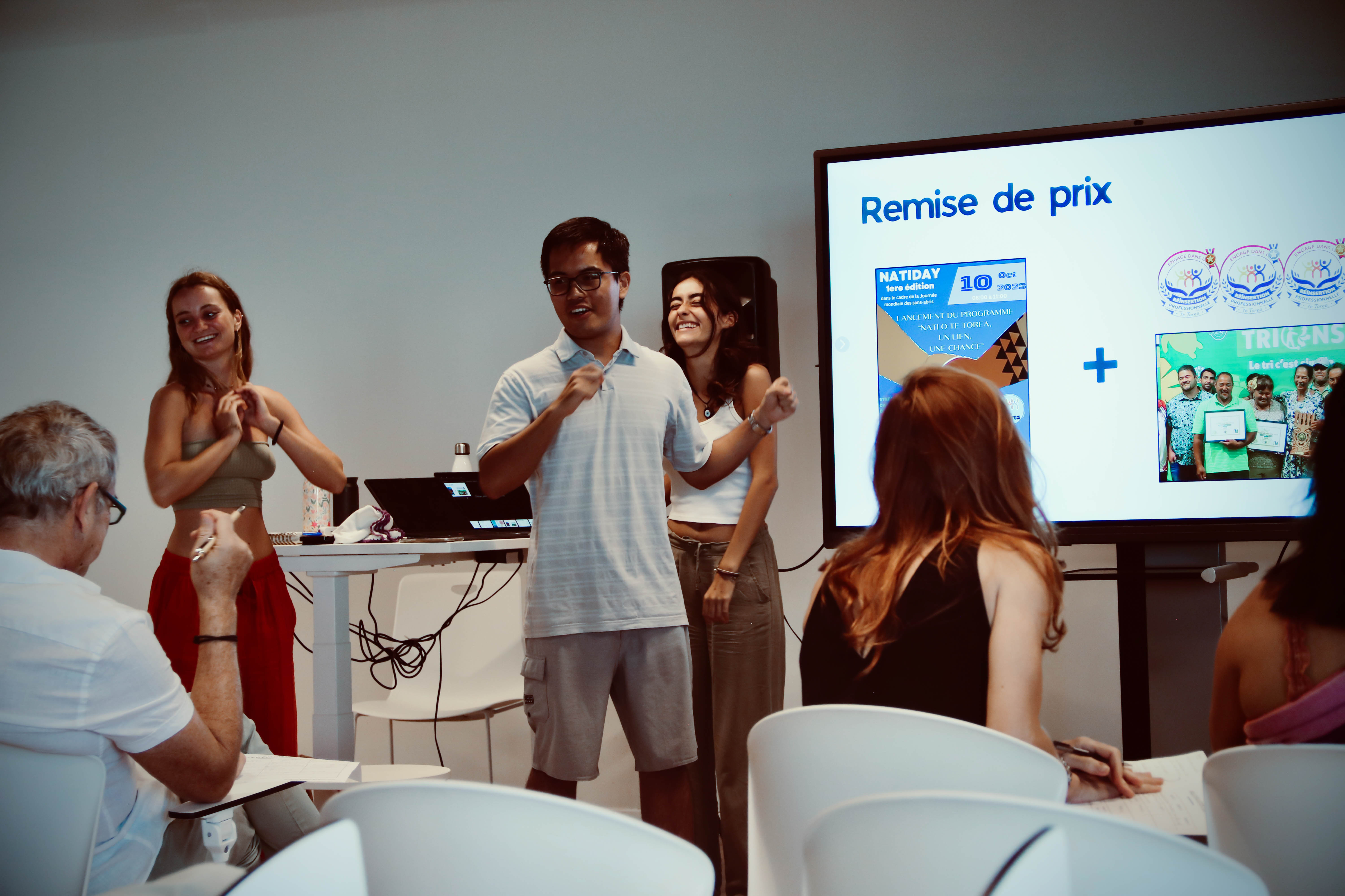 Remerciements à l'ensemble des membres du jury : Céline Charpiot — Directrice, Hineima Consulting ; Hélène Jorry — Coordinatrice du projet Narua, UPF ; Patrick Calposini — Vice-président Transformation, UPF ; Rainatea Stein — Chargée du programme Te Nati O Te Torea, association Te Torea ; Rudy Calmes — Directeur général, Newrest Polynésie ; et Vai Iti Nina Ya-Matsy — Directrice générale, association Te Torea ; ainsi qu'à Karine Le Flanchec pour l'animation, avec brio, de ce cours sous format Hackathon.