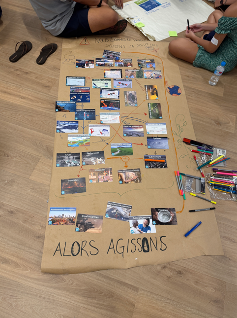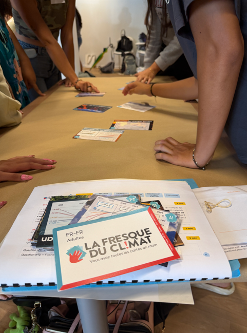 Reconnue à l’échelle internationale, la Fresque du climat est un atelier pédagogique fondé sur les données scientifiques du GIEC. En petits groupes, les étudiants reconstituent les liens entre les causes, les mécanismes et les conséquences du changement climatique, avant d’échanger sur les actions individuelles et collectives possibles.