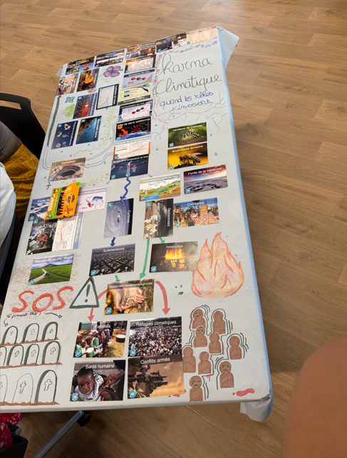 Cet atelier pédagogique participatif, animé par six fresqueurs, avait pour objectif de sensibiliser les étudiants aux enjeux climatiques et de les engager dans une réflexion collective sur les leviers d’action face aux transitions environnementales et sociétales.