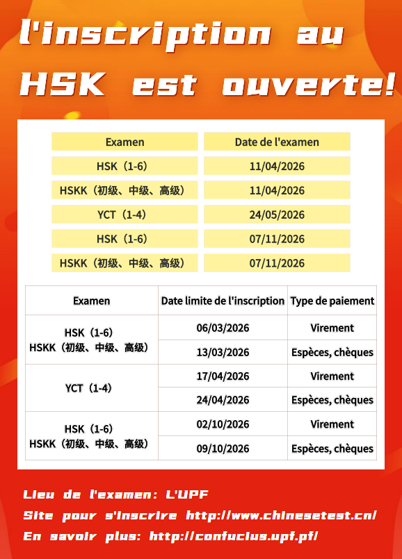 L’Institut Confucius de l’UPF organise les examens internationaux HSK, HSKK et YCT